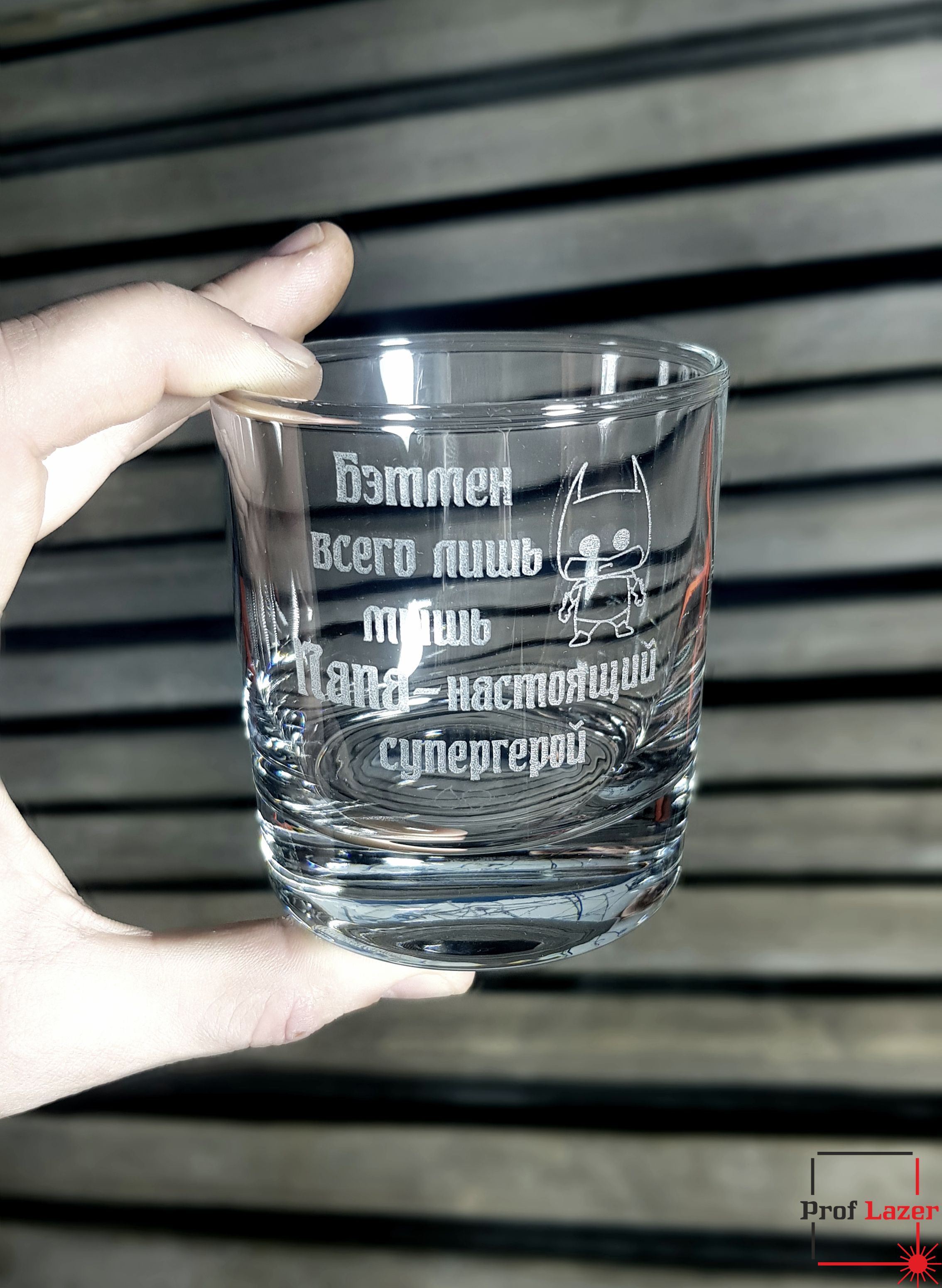 Рисунки и надписи на бокале с коробке нанесены методом лазерной гравировки