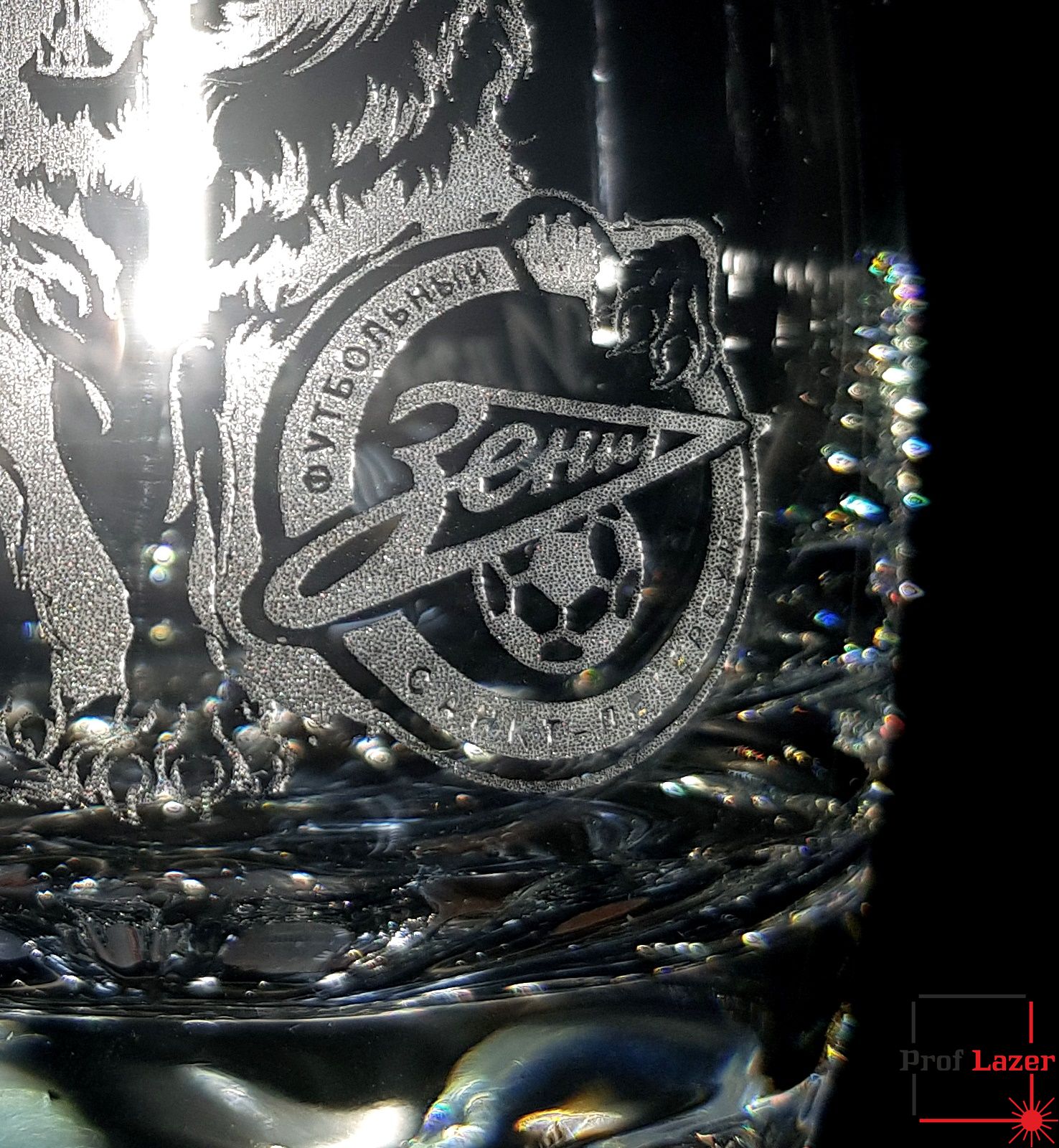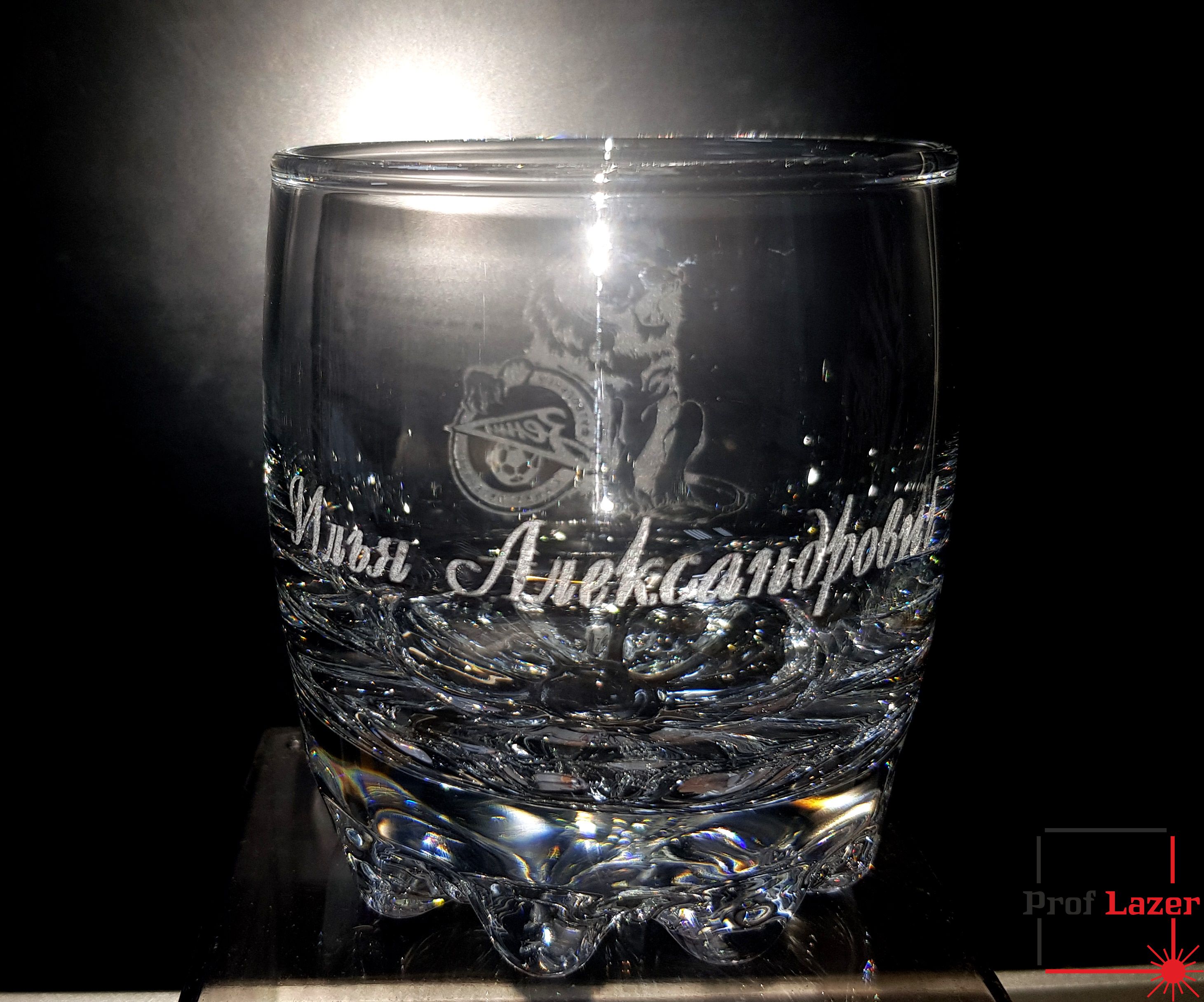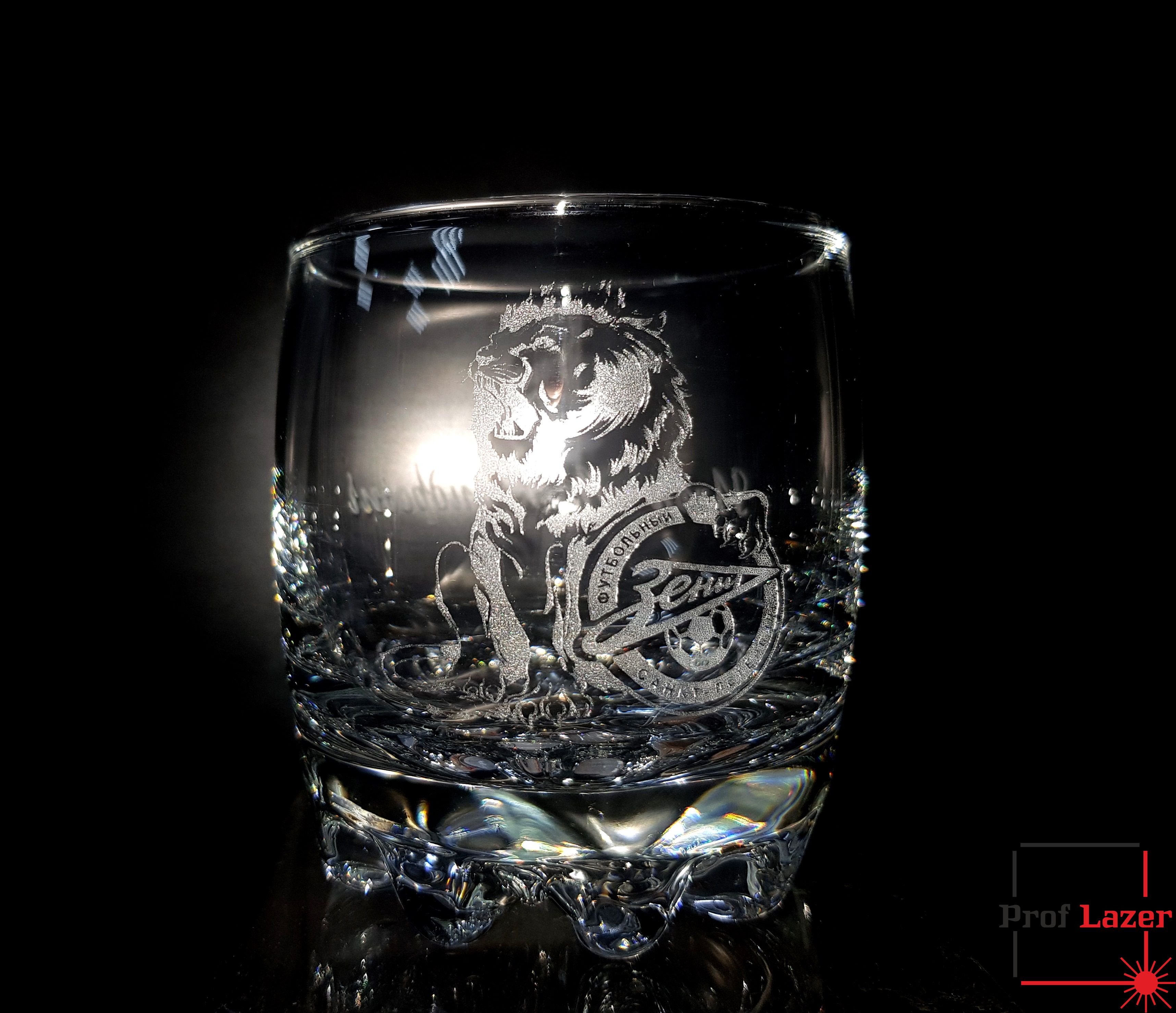 Именной стакан под виски ФК "Зенит" с изображение льва, имя и отчества владельца этого подарка.