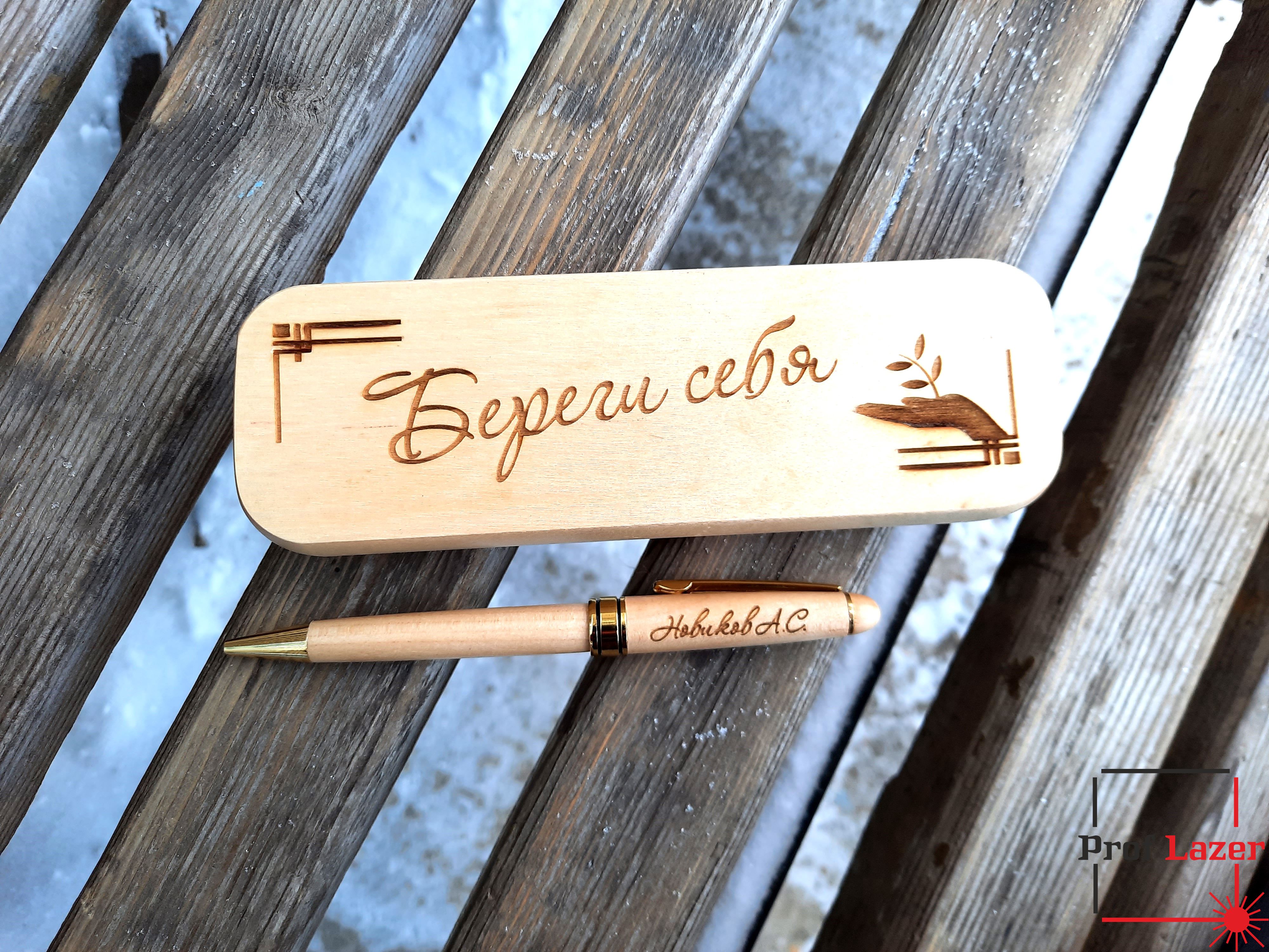 Лазерная гравировка на деревянной ручке в футляре.