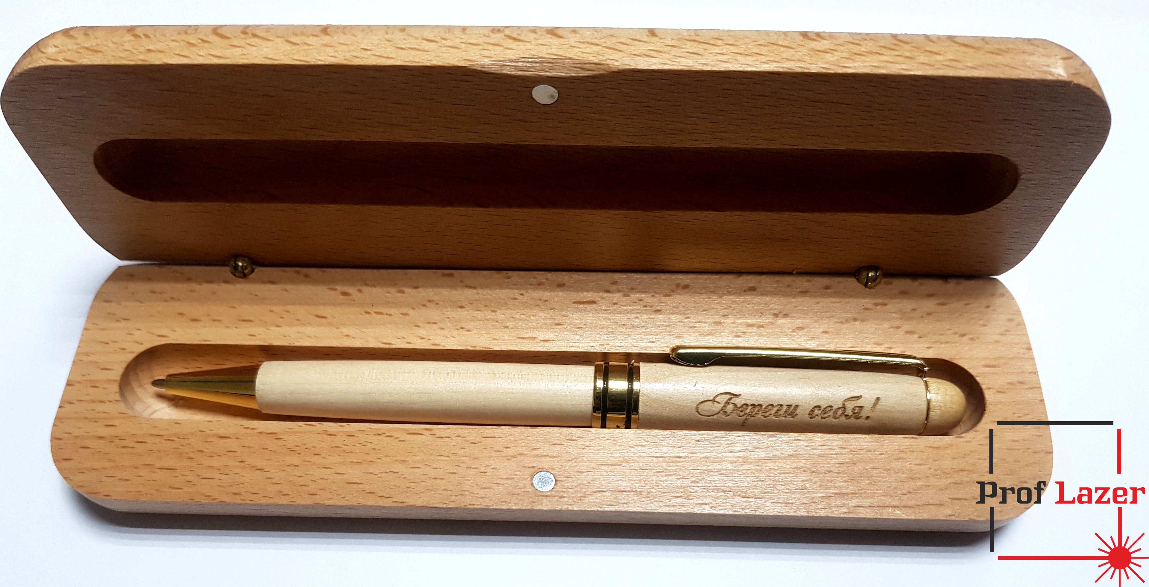 Деревянная шариковая ручка в футляре. Гравировка на футляре и ручке "Береги себя".