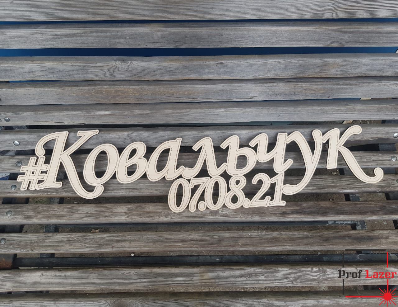 Деревянная фамилия с датой на свадьбу.