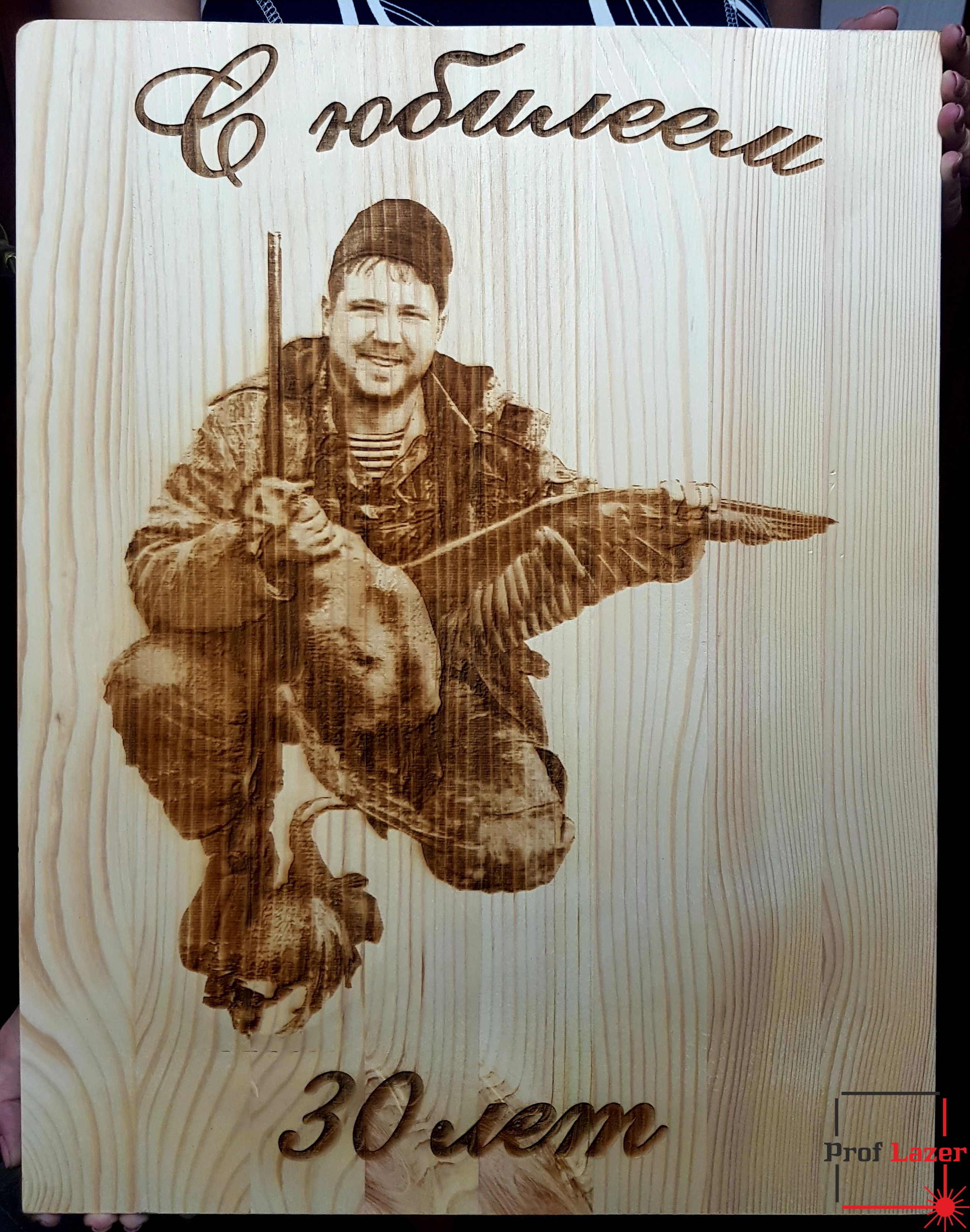 Гравировка портрета по фото на деревянном щите.