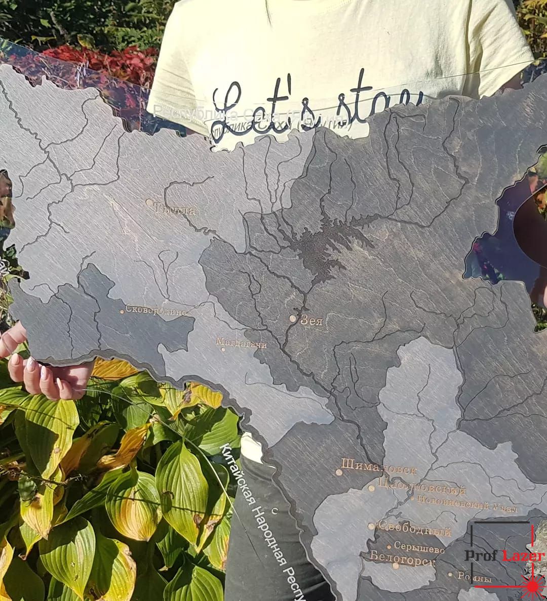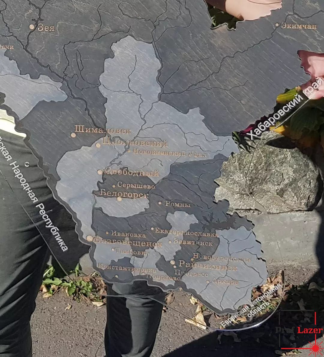 Деревянная карта Амурской области 1,0 х 0,75 м