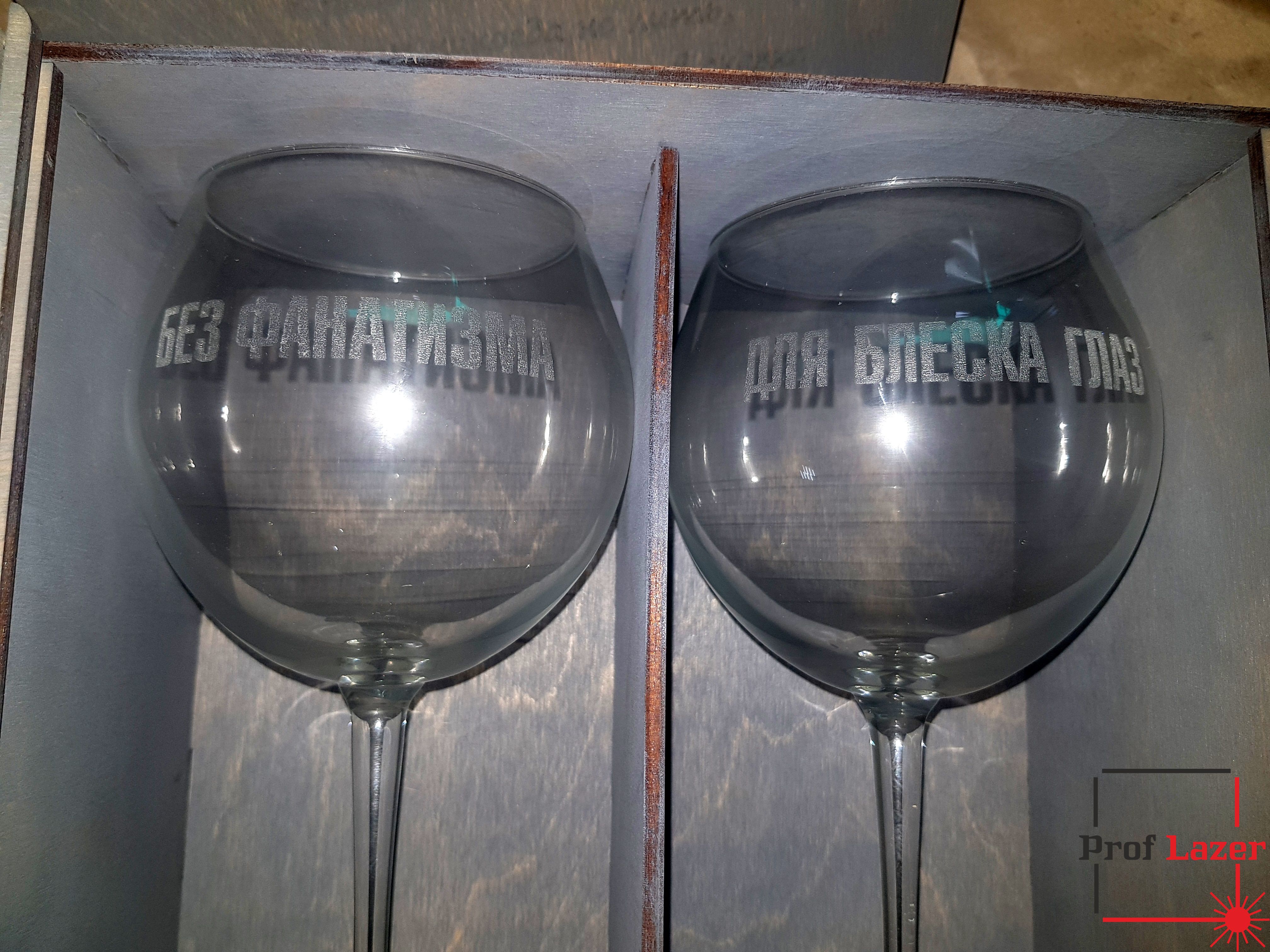 Винны бокалы с индивидуальной гравировкой "Для блеска глаз" и "Без фанатизма".