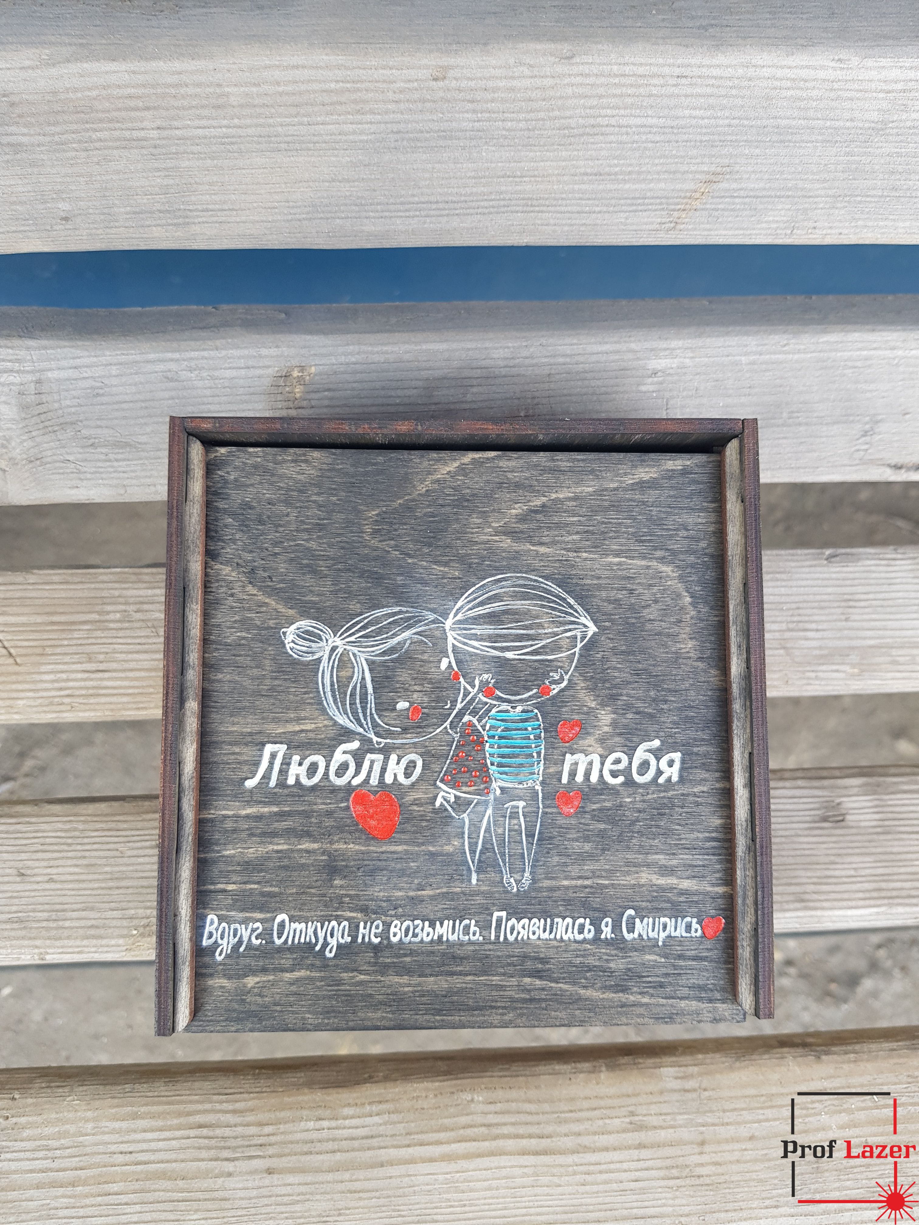 Подарочная упаковка с ручной росписью, с деревянным наполнителем.