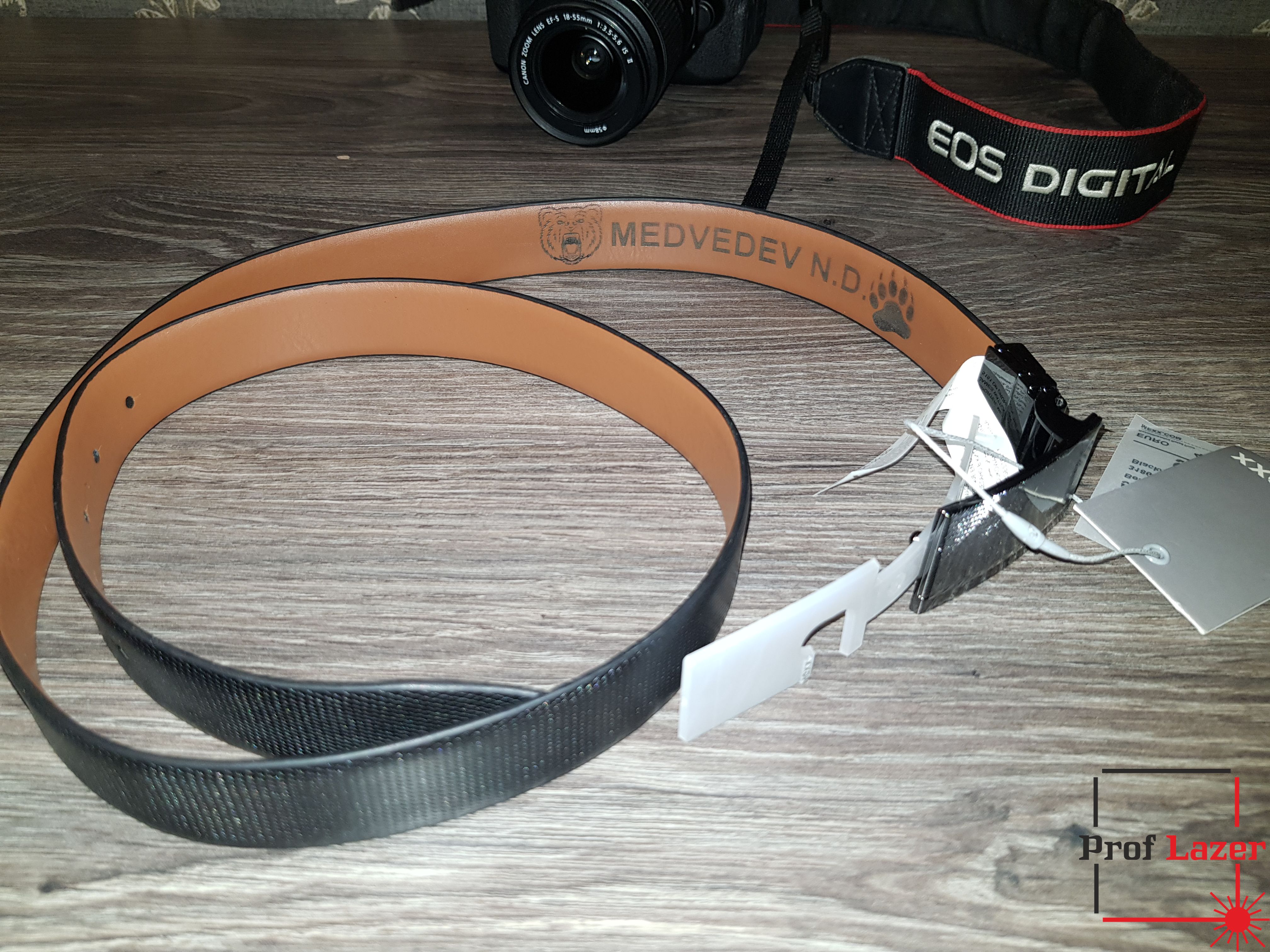 Лазерная гравирова на ремне инициалов