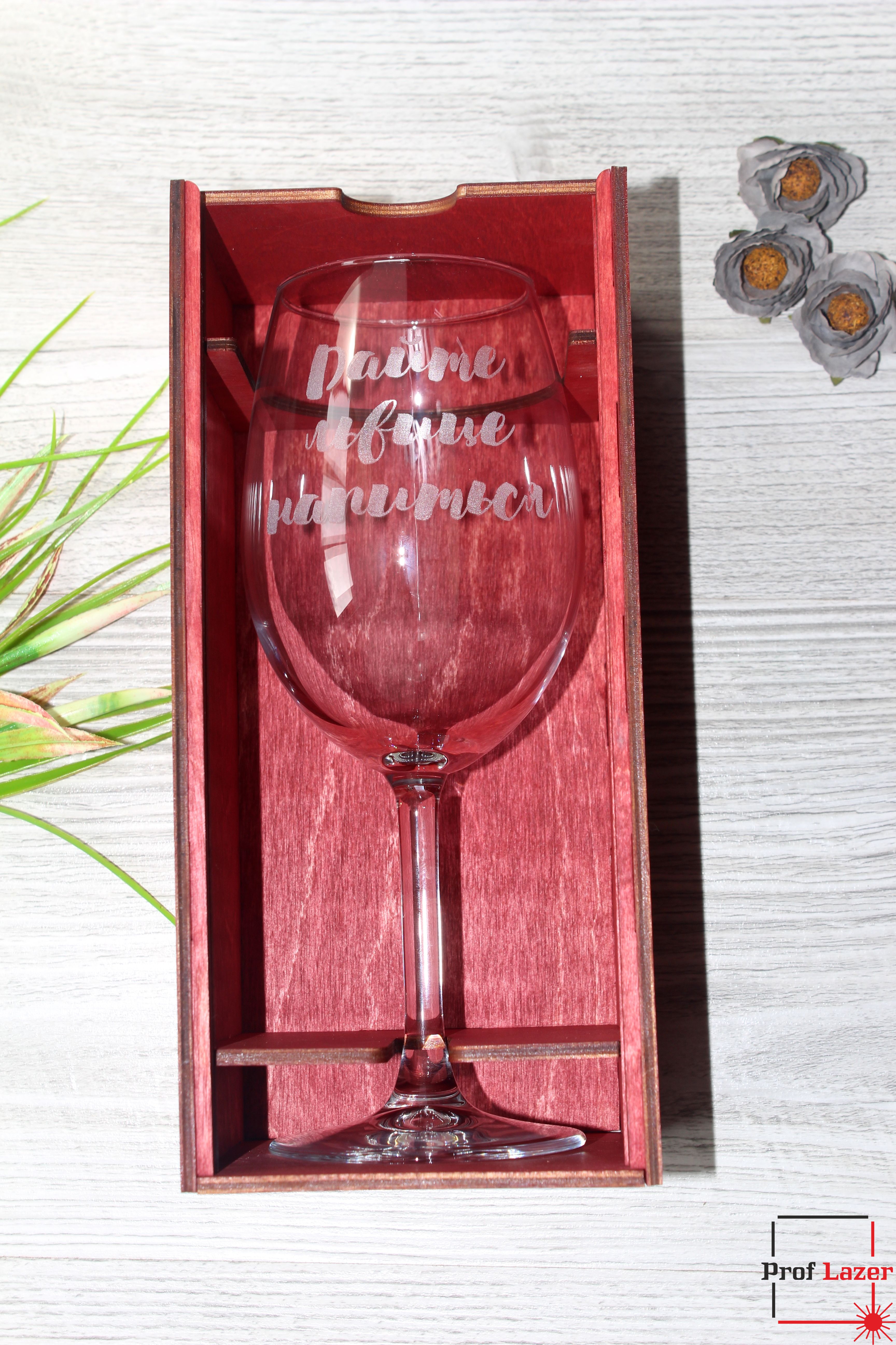 Винный бокал с гравировкой с подарочной коробке.